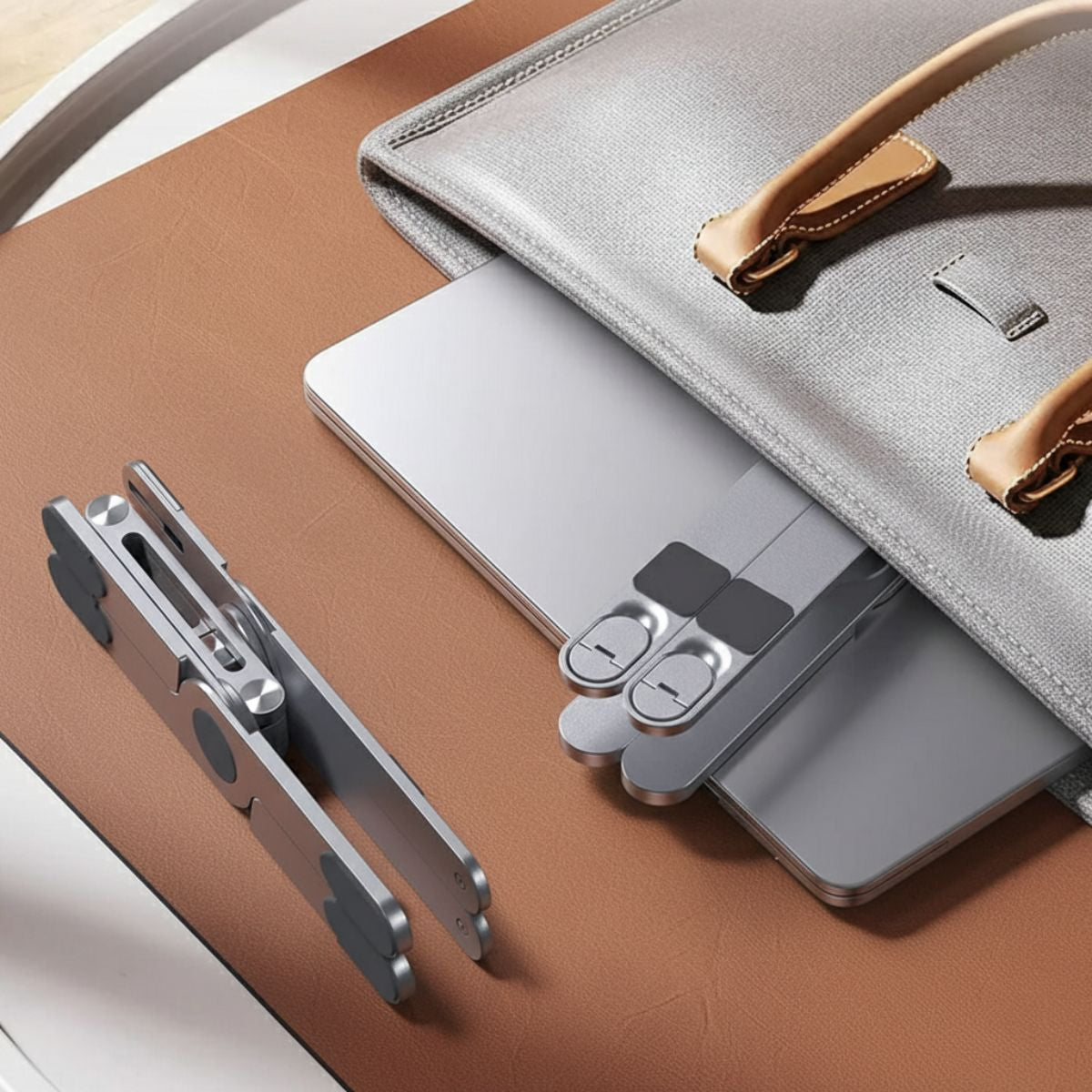 Absolut! Der ELEVATE PRO lässt sich in Sekunden zusammenklappen und wiegt nur wenige hundert Gramm. In der mitgelieferten Tragetasche passt er problemlos in jeden Laptop-Rucksack oder jede Handtasche. Perfekt für Remote Worker, die überall ergonomisch arbeiten wollen.