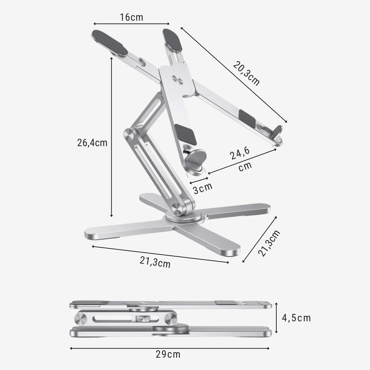 Die 360°-Drehfunktion macht spontane Präsentationen zum Kinderspiel. Drehe deinen Laptop zu Kollegen, ohne den Ständer zu bewegen. Maximal ergonomisch und ohne Rückenschmerzen.